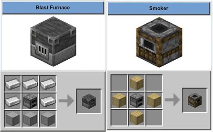 Blast furnaces were added in the Village & Pillage update in early 2019. They smelt ore blocks, tools and armour, just like regular furnaces. But they work twice as fast as regular furnaces do! ... The only real downside is that it yields less experience than a normal furnace – about half as much.