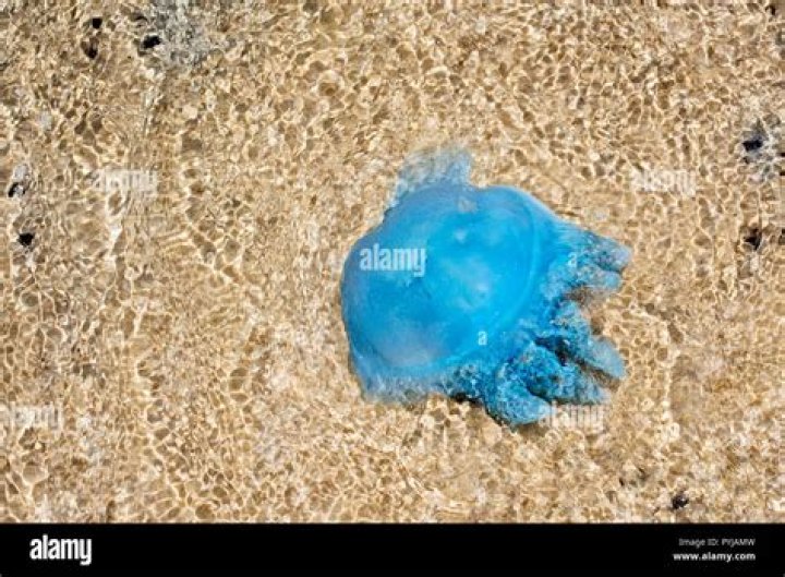 "It was like bubble wrap across the beach." The common blue blubber jellyfish grows to 35 centimetres in diameter and is not normally dangerous to humans unlike the infamous bluebottle, also known as Portuguese man o' war, or the at times deadly Irukandji, which is found further north.