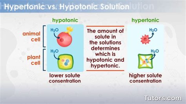 A hypotonic solution is one in which the concentration of solutes is greater inside the cell than outside of it, and a hypertonic solution is one where the concentration of solutes is greater outside the cell than inside it.