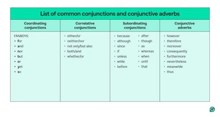 There are four kinds of conjunctions: coordinating conjunctions, correlative conjunctions, subordinating conjunctions, and conjunctive adverbs.
