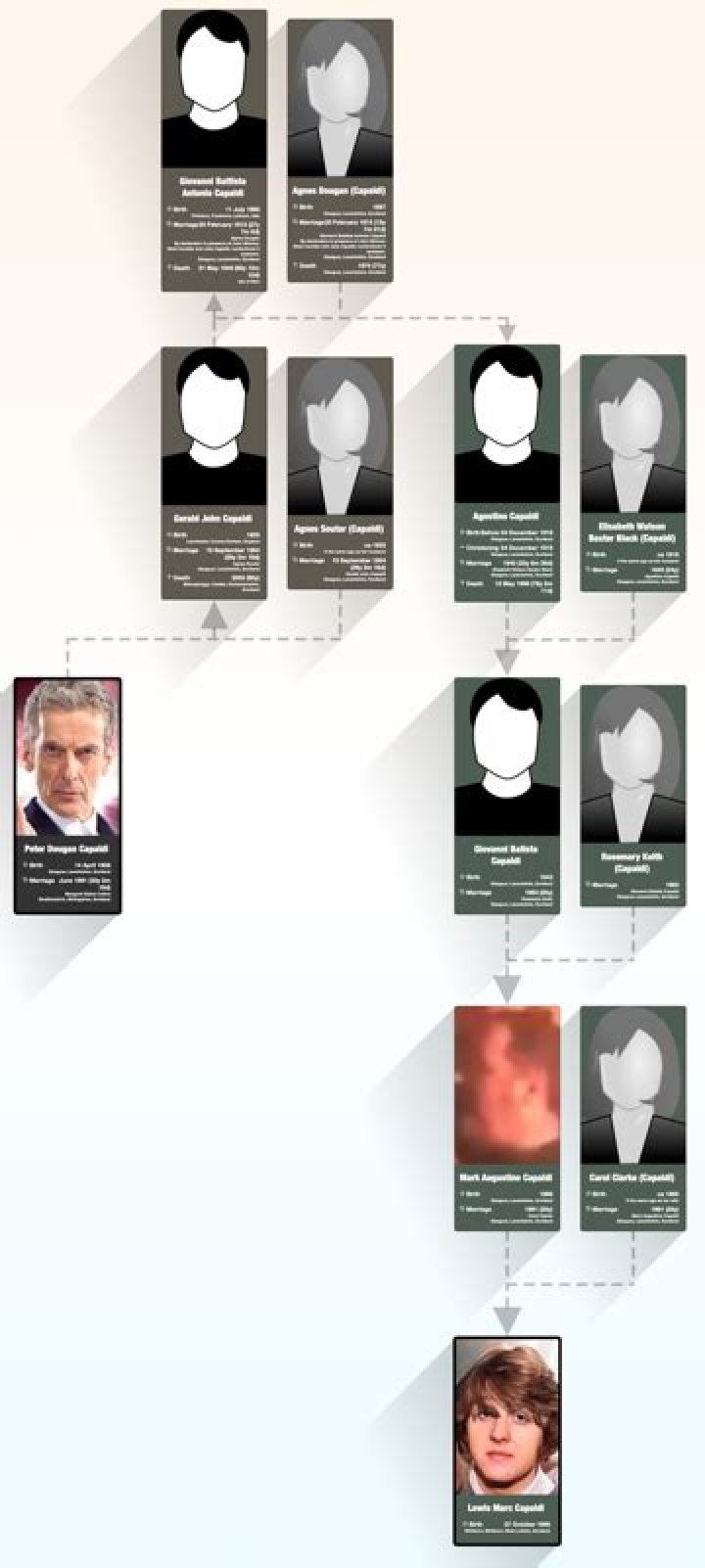 They are related! Lewis discovered that Peter is his dad's second cousin - making Lewis and Peter Capaldi second cousins once removed - with Lewis telling the Daily Record, "My dad and my aunties told me we were related to Peter a while ago, I think he's my dad's second cousin.