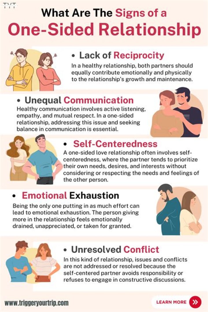 A one-sided relationship can make a person feel ignored and rejected. This can have a toxic impact on a person's emotional health. We all want to feel loved, enjoy companionship, and feel a sense of belonging.