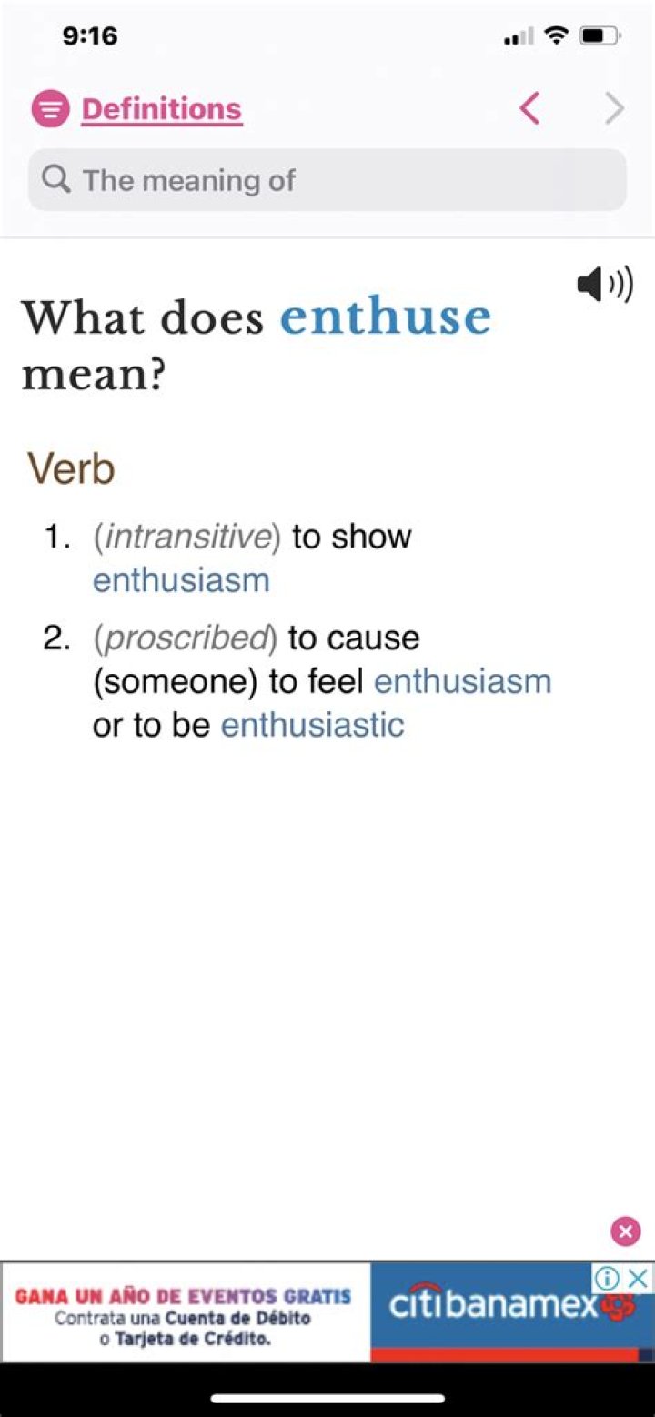 Carmen enthused over the rock. Bella opts for neutral, barely there hues that could border on boring for the experimental, color enthused makeup artist. It can also means 'great' as a response to something you're enthused about.