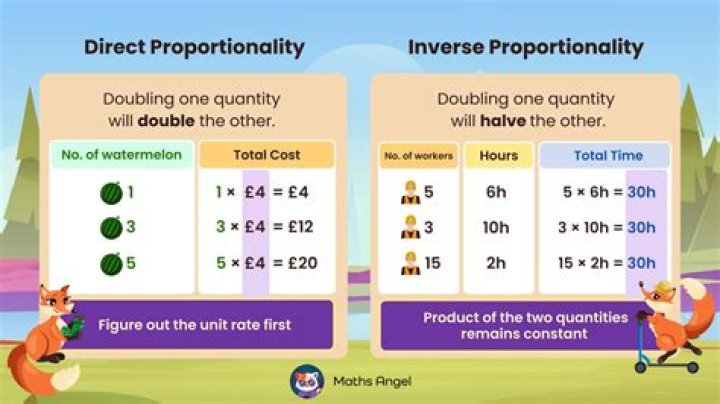 In a direct proportion, the ratio between matching quantities stays the same if they are divided. (They form equivalent fractions). In an indirect (or inverse) proportion, as one quantity increases, the other decreases.