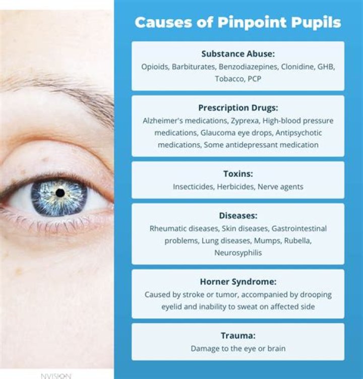 Pinpoint pupils occur when the pupils (the black center part of the eye) become constricted and appear smaller than normal. This can be caused by medical conditions affecting the brain, certain medications, changes in lighting or using certain drugs.