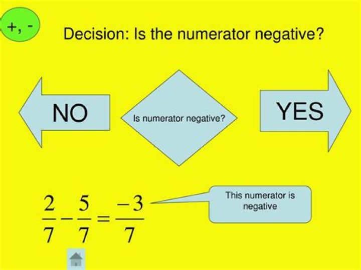 Usually, the negative sign is placed in front of the fraction, but you will sometimes see a fraction with a negative numerator or denominator. ... If both the numerator and denominator are negative, then the fraction itself is positive because we are dividing a negative by a negative.