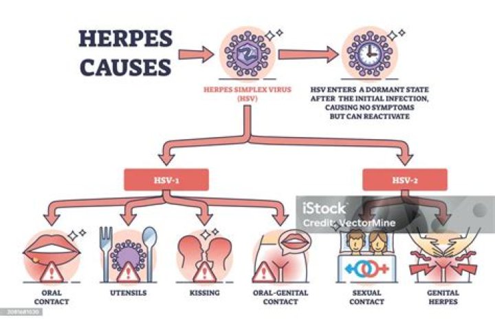 HSV-1 can cause “genital herpes,” but most cases of genital herpes are caused by HSV-2. Typically, someone with HSV-2 will have sores around the genitals or rectum. Symptoms are usually the most intense during the first outbreak and become less intense over time.
