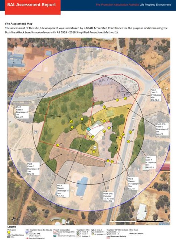 The BAL assessment comes from Section 2 of Australian Standard 3959 Construction of buildings in bushfire-prone areas 2009.