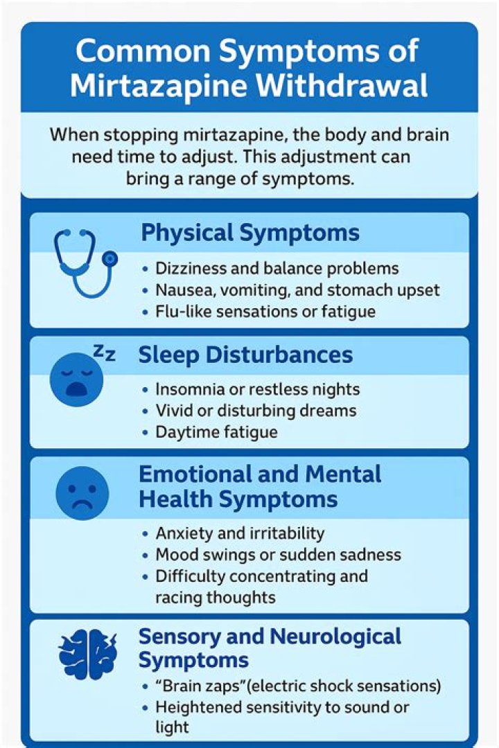 The best way to ease withdrawal symptoms when stopping mirtazapine is to lower the dosage slowly each month. The rate at which the dose should be lowered depends on how well the body responds to the reduction in use. However, it is typically recommended to taper down at a rate of only about 10% each month.
