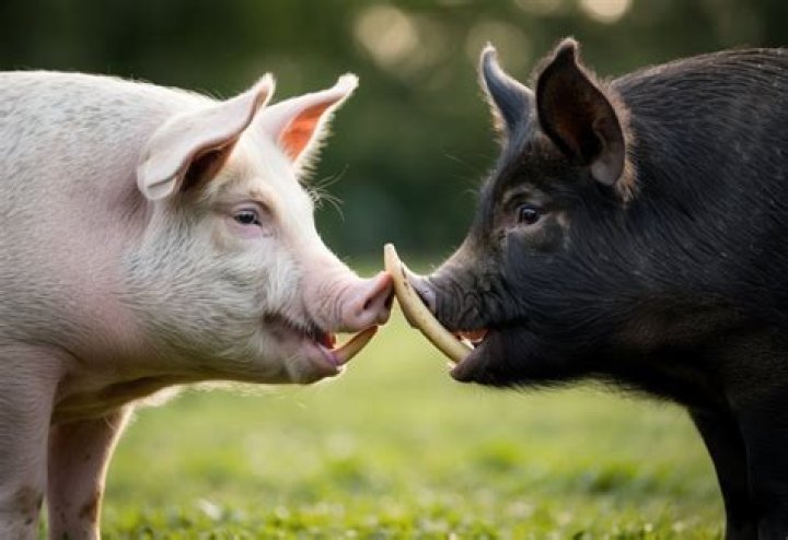 When a farmed pig breeds in the wild, its offspring will be feral, with tusks—all pigs grow them, but farmers cut them off their piglets—and likely more fur, especially if it's a hybrid between a native pig and a wild boar.