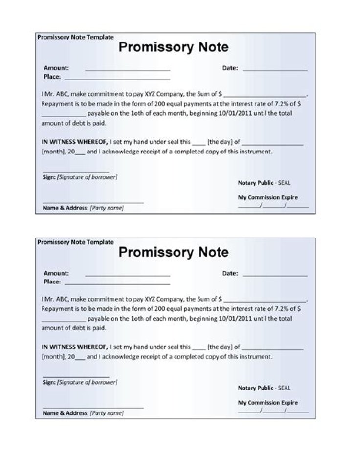 Promissory notes legally bind the borrower and lender in an agreement where the borrower is responsible for paying back a loan or debt. They lay out the conditions of the loan and detail the time frame for paying back the loan as well as any interest that might accrue over the life of the loan.