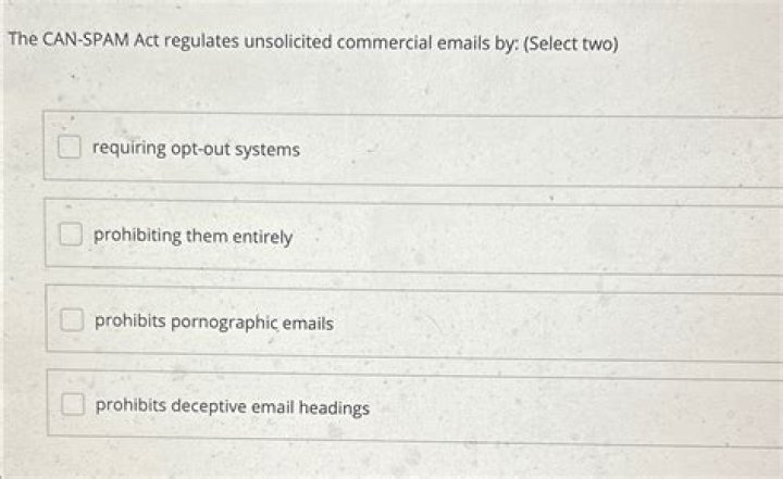 Spam. ... The email message and its subject header must not be deceptive or misleading, the sender's identity must be accurate and its postal address provided, and the message must announce itself as commercial in nature, but the CAN-SPAM Act does not require explicit or implicit consent before sending the message.