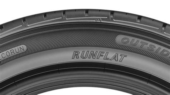 In order to keep you moving without air pressure, run-flat tyres are designed with a reinforced sidewall to try and keep the shape of the tyre with the car's weight on top of it. This means that the rubber won't “give” as much, and will be able to keep its shape a lot better than regular tyres.