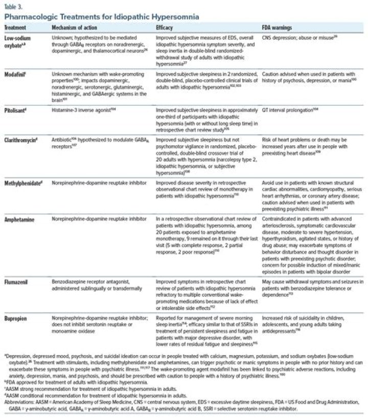 What helps idiopathic hypersomnia?