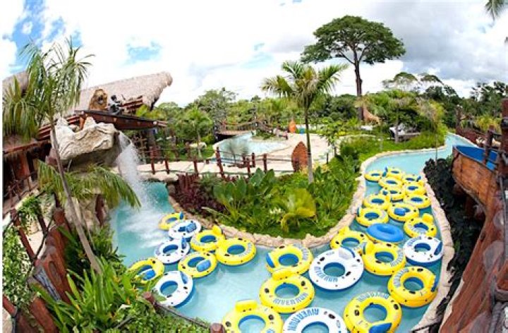 "Parque Temático Hacienda Nápoles" comes complete with a water park, a guided safari attraction, aquariums, and a replica of the caves in Colombia's Cueva de los Guácharos National Park. In December 2018, a day ticket to the park cost 42,000 pesos (around $15).
