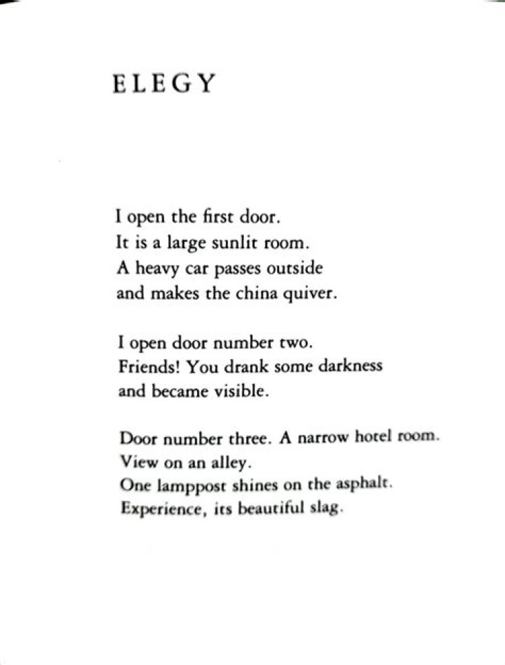 Elegies are a wonderful example of the ways in which poetry can serve a more personal and emotional purpose for the poet, as many poets throughout history have written elegies not only to commemorate a lost loved one, but as a way of mourning and of processing their own grief.