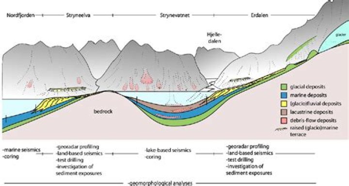 Fjords commonly are deeper in their middle and upper reaches than at the seaward end. This results from the greater erosive power of the glaciers closer to their source, where they are moving most actively and vigorously. ... Glacial erosion produces U-shaped valleys, and fjords are characteristically so shaped.
