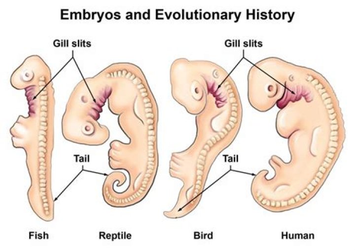 As it happens, early human embryos do have slits in their necks that look like gills. This is almost certainly because humans and fish share some DNA and a common ancestor, not because we go though a “fish stage” when in our mothers' wombs as part of our development towards biological perfection.