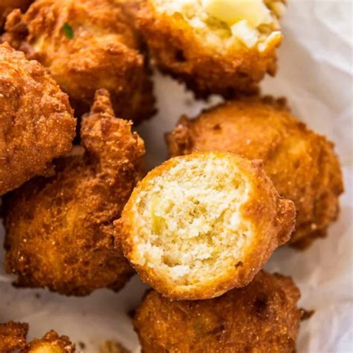 A Southern specialty, hush puppies are small, deep-fried balls made of a cornmeal batter. They are a humble side dish often served with fried foods like catfish and other seafood.