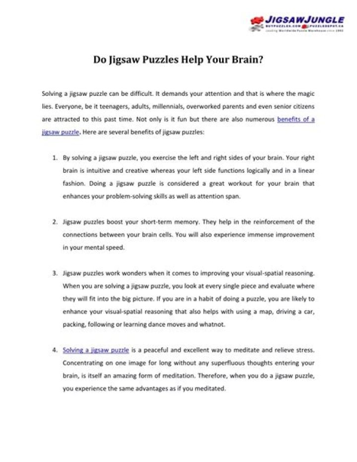 What are the benefits of doing jigsaw puzzles?