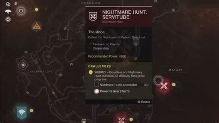 Nightmare Hunts are available every week on The Moon (This is a Legacy activity which means it does not reward Pinnacle or Powerful drops).
