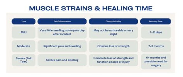 Recovery time depends on the severity of the injury. For a mild strain, you may be able to return to normal activities within three to six weeks with basic home care. For more severe strains, recovery can take several months. In severe cases, surgical repair and physical therapy may be necessary.