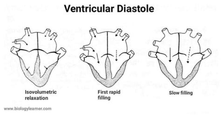 Ventricular diastole is the period during which the two ventricles are relaxing from the contortions/wringing of contraction, then dilating and filling; atrial diastole is the period during which the two atria likewise are relaxing under suction, dilating, and filling.