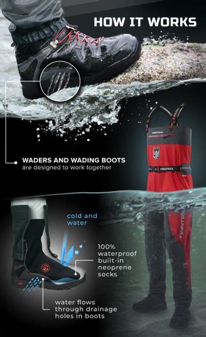 Wading boots are not designed to be waterproof. Instead, they're designed to allow water to freely pass through their structure, while your stockingfoot waders or wading socks keep your feet dry.