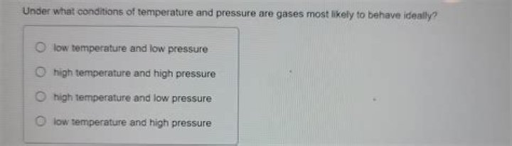 Gases are most likely to behave ideally at high temperature and low pressure.