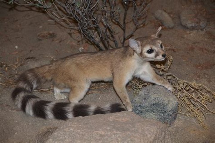 Also called ringtail cat, miner's cat, and cacomistle, ringtails are cat-sized carnivores that resemble a small fox with a long raccoon-like tail - in fact they are related to the raccoon and coatimundi.