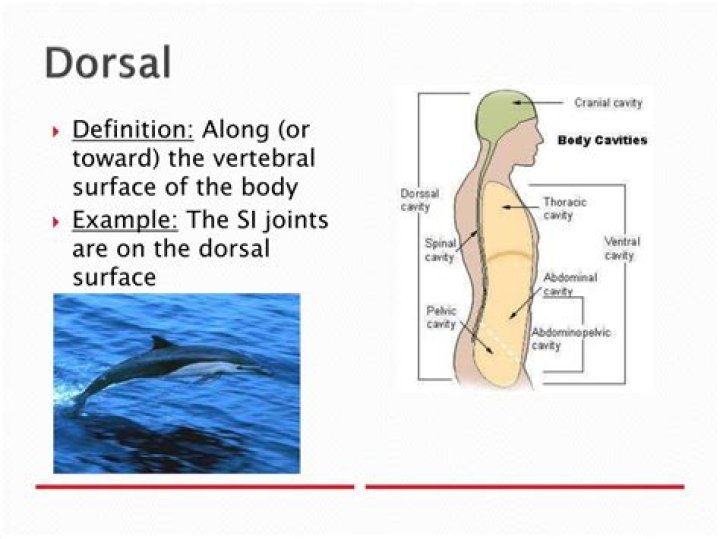 - Dorsal: Near the upper surface, toward the back.