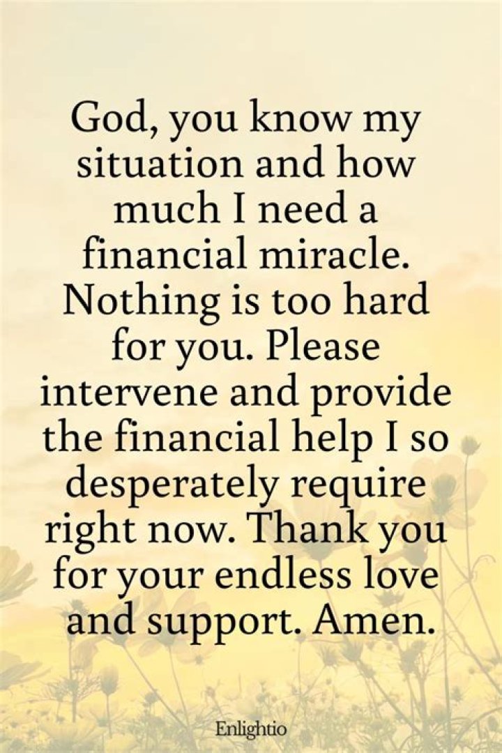 God, I stand in financial need, but your word declares that you are an ever-present help in time of need (Psalm 46:1). I thank you that you are present and that you will provide me with the financial resources that I need to have stability.