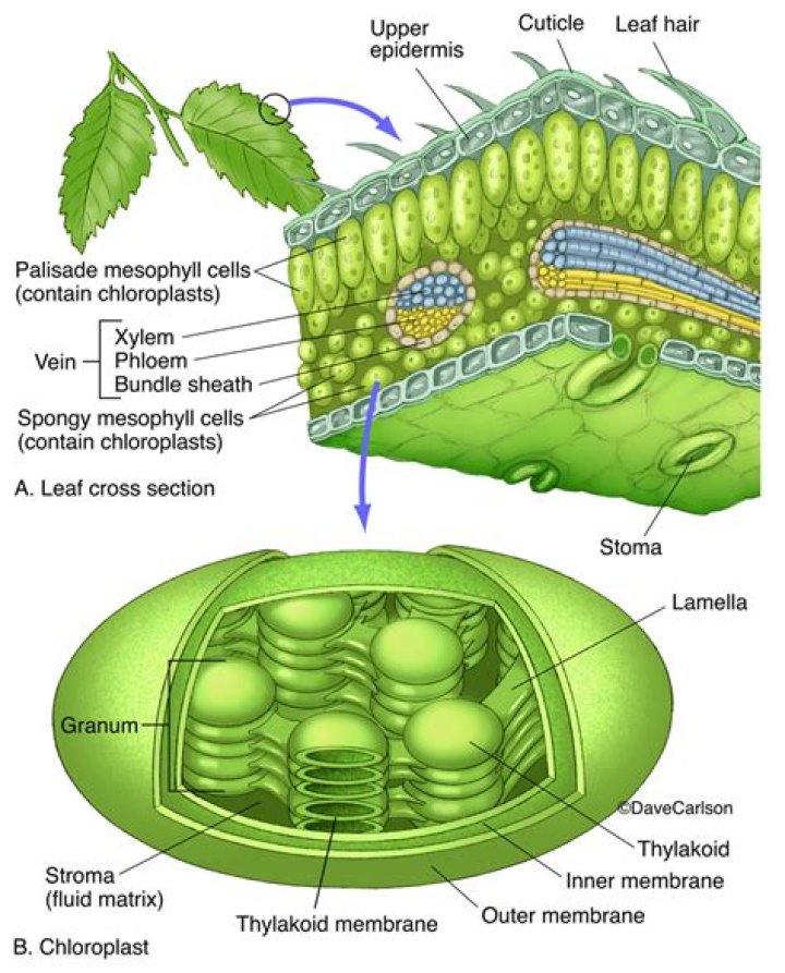 Which part of leaf contains chloroplasts?