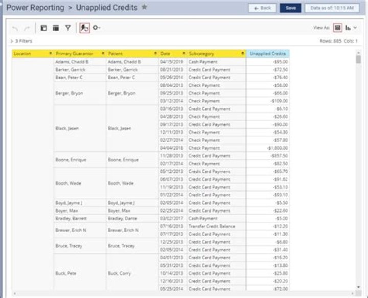 PTOS 4.5 contains an area for unapplied balances. Unapplied balances are overpayments or prepayments. These payments can come from Patient Payments, Insurance Payments, or Adjustments. Unapplied balances are monies that have been paid on an account but not distributed to services on the account.