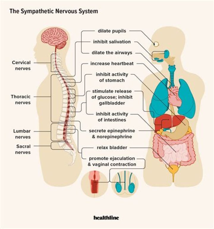 eg, the sympathetic nervous system can accelerate heart rate, widen bronchial passages, decrease motility (movement) of the large intestine, constrict blood vessels, cause pupil dilation, activate goose bumps, start sweating and raise blood pressure.