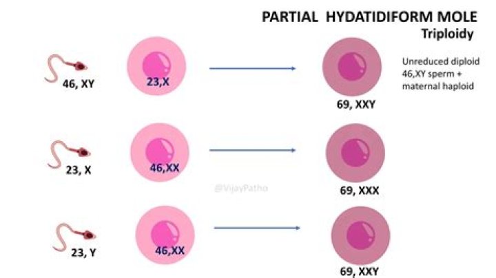 A partial molar pregnancy is a genetic accident. In a normal pregnancy, the egg receives one set of 23 chromosomes from the father and one set of 23 chromosomes from the mother, for a total of 46 chromosomes.