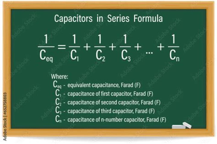 When capacitors are connected one after another, they are said to be in series. For capacitors in series, the total capacitance can be found by adding the reciprocals of the individual capacitances, and taking the reciprocal of the sum.