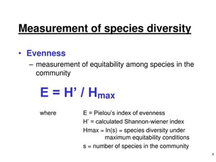 Biodiversity is defined and measured as an attribute that has two components — richness and evenness. ... The more equal species are in proportion to each other the greater the evenness of the site. A site with low evenness indicates that a few species dominate the site.