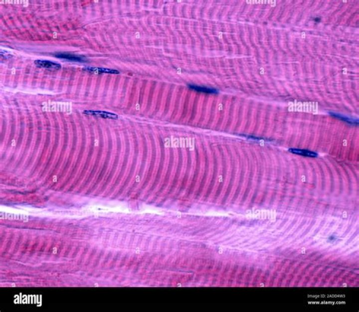 Striated muscle tissue is a muscle tissue that features repeating functional units called sarcomeres. The presence of sarcomeres manifests as a series of bands visible along the muscle fibers, which is responsible for the striated appearance observed in microscopic images of this tissue. ... Cardiac muscle (heart muscle)