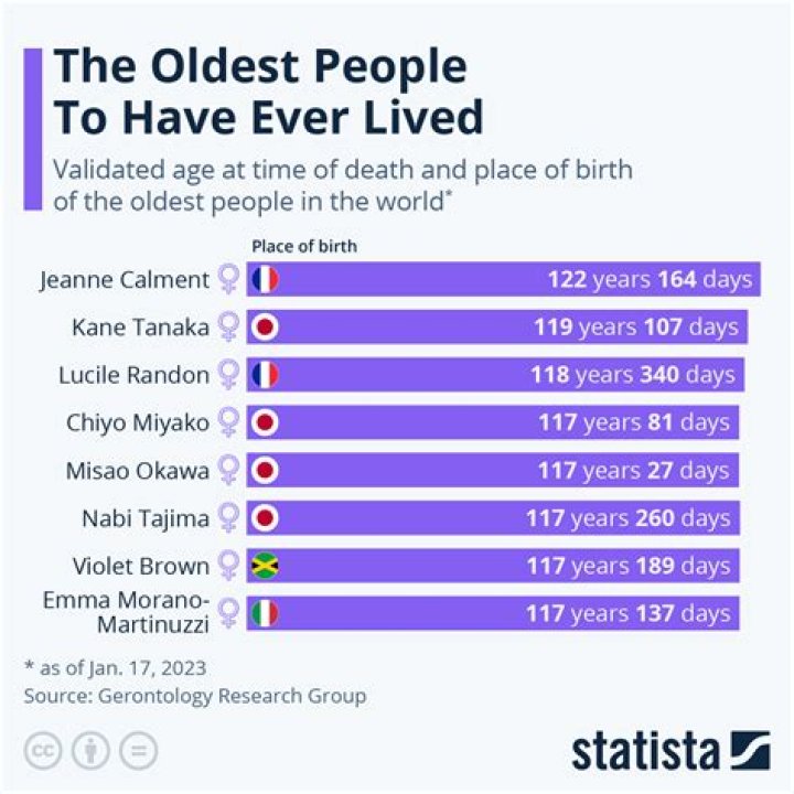 The oldest person ever to have lived, according to Guinness World Records, is Jeanne Calment, from France, who lived to be 122 years and 164 days old. The oldest man ever is Jiroemon Kimura, from Japan, who was born on April 19th, 1897, and died, the age of 116 years and 54 days, on June 12th, 2013.