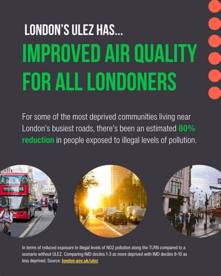 All Londoners live in areas exceeding World Health Organization guidelines for the most dangerous toxic particles. Since the Mayor's plans for the ULEZ were announced in 2017, improvements in air quality within the central ULEZ have been large and rapid: ... ULEZ has saved around 12,300 tonnes of CO2 emissions.