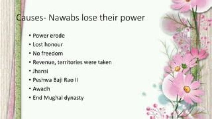 Since the mid-eighteenth century, nawabs and rajas had seen their power erode. They had gradually lost their authority and honour. Residents had been stationed in many courts, the freedom of the rulers reduced, their armed forces disbanded, and their revenues and territories taken away by stages.