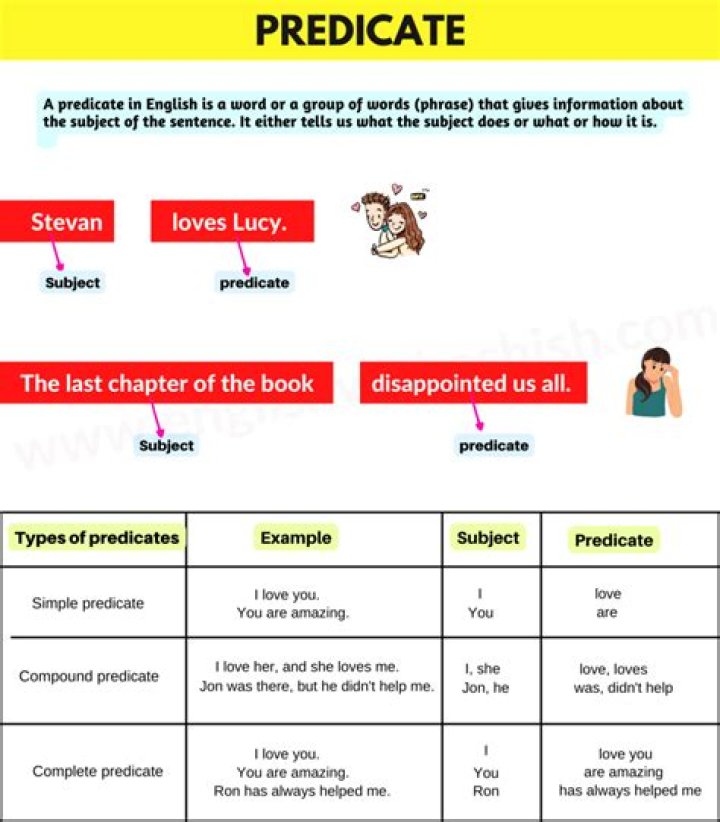 A predicate is the part of the sentence that tells about the subject. It contains the verb that tells about the subject. To identify the subject of a sentence, look at the verb. ... This is the subject.
