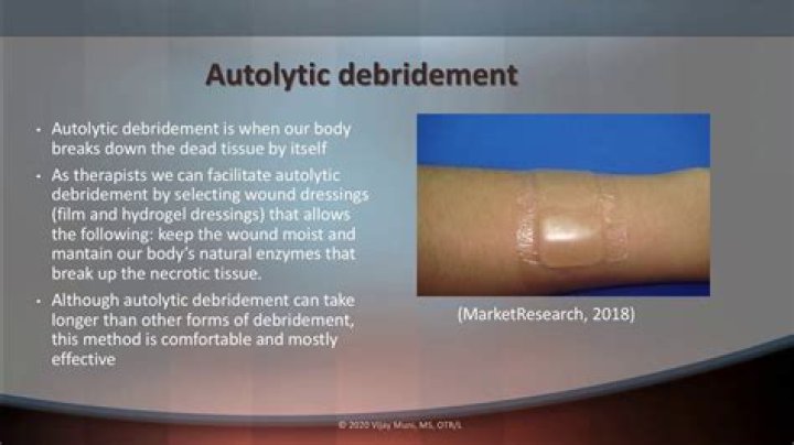 Autolytic debridement is a conservative approach, often used for patients that cannot tolerate more aggressive forms of debridement. Appropriate application of the moisture-retentive dressing and protection of the periwound skin while using this type of debridement is imperative.
