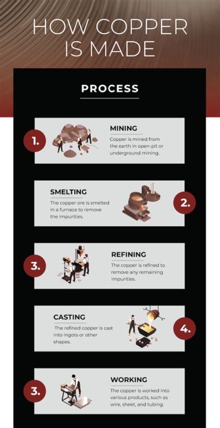 Copper is a mineral and an element essential to our everyday lives. It is a major industrial metal because of its high ductility, malleability, thermal and electrical conductivity and resistance to corrosion.