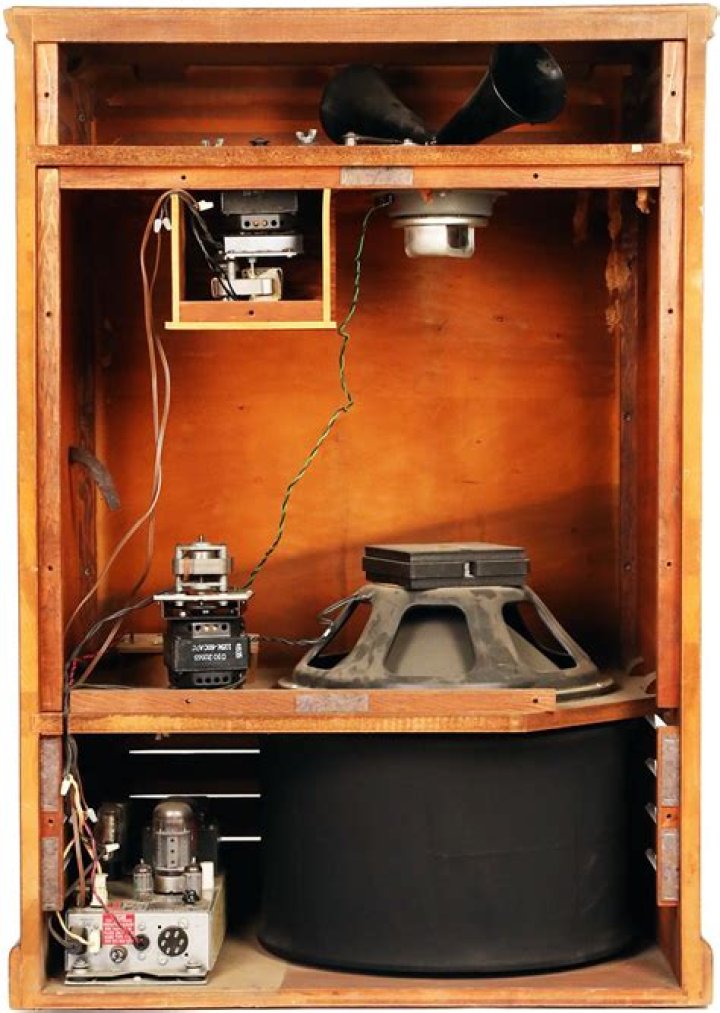To remedy this problem, in 1937 he invented a speaker which rotates inside its cabinet, producing a Doppler effect which modulates the sound. To some extent this imitates the resonance of the organ in a large auditorium by projecting it 360 degrees.