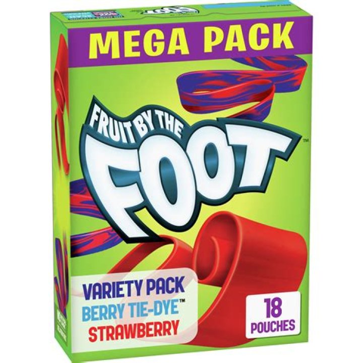 Fruit By The Foot is fruit snack made from a long roll of fruit flavored candy. Measuring approximately 3 feet in length, this soft fruity length of candy has proved rather poplar thanks to novel design, and fruity flavors.