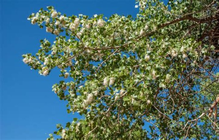 The cottonwood—also known as the poplar—is a tall tree with a spreading crown, named for its cotton-like seeds.