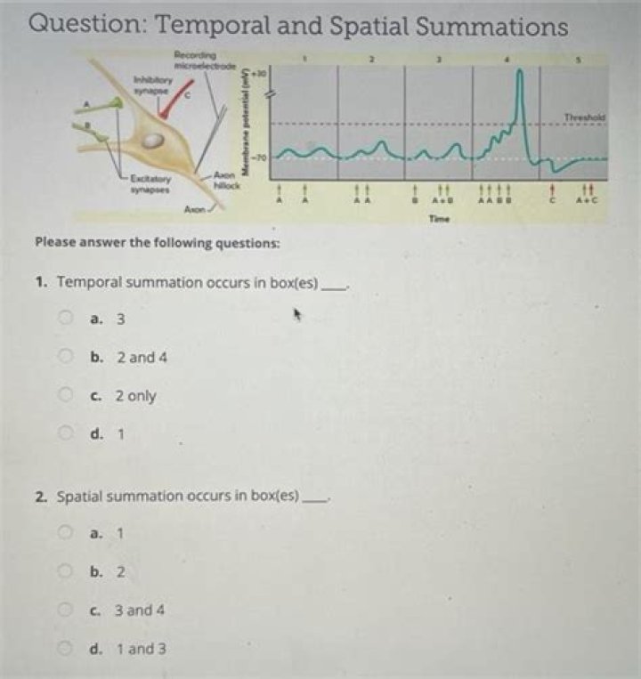 “Temporal summation” is the effect produced by a particular neuron to be able to achieve an action potential. Meanwhile, “spatial summation” is the method of achieving an action potential in a neuron which receives input from several cells.