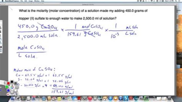 Key Points. Molarity (M) indicates the number of moles of solute per liter of solution (moles/Liter) and is one of the most common units used to measure the concentration of a solution. Molarity can be used to calculate the volume of solvent or the amount of solute.